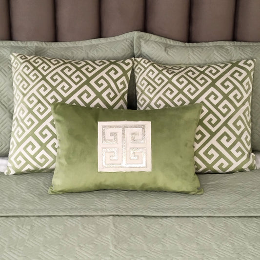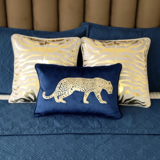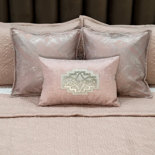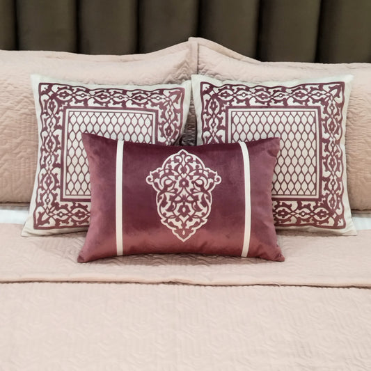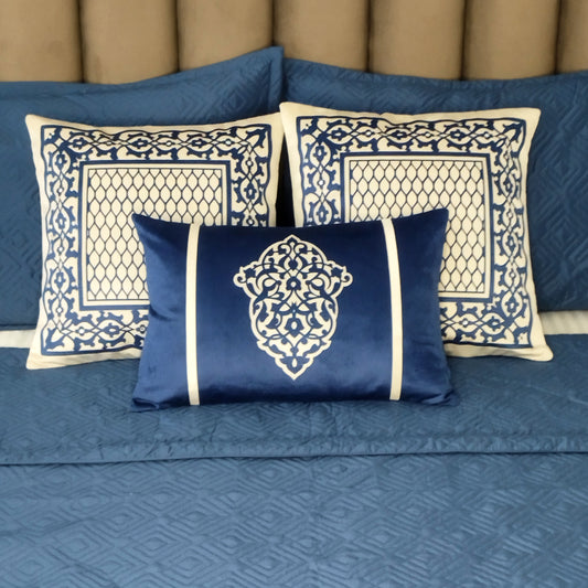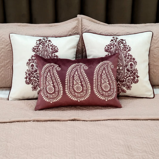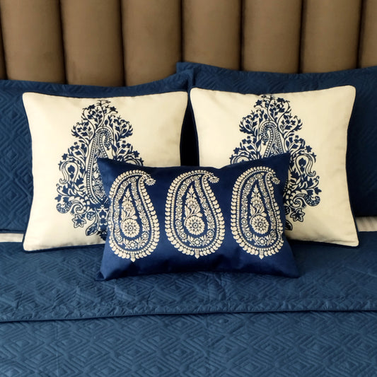 - Lumbar Cushion Cover : Also known as the highlighter, this 12" x 18" rectangular cushion is the star of the show. It adds depth and a soothing dimension to the whole set. Its embellished with a range of materials and textures to give a more luxurious and designer look and feel.