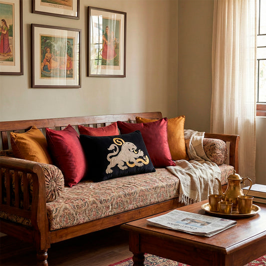 Black Velvet & Metallic Lion vs Serpent Lumbar Cushion Cover