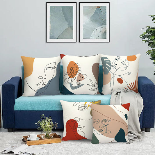 Fusion Floral & Stripes Printed Cushion Cover Set of 5