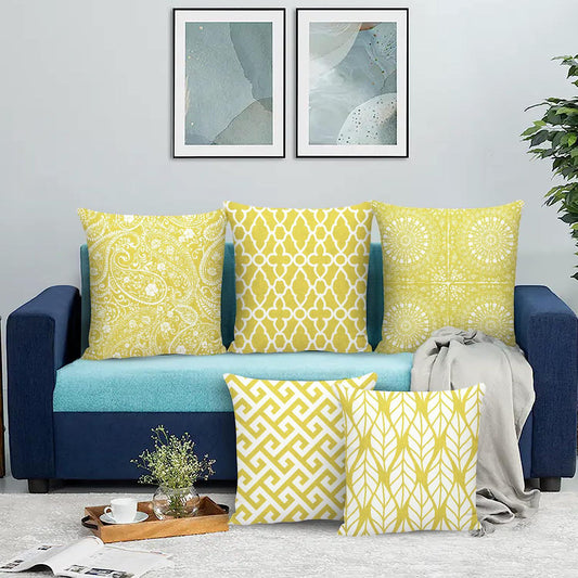 Fusion Floral & Jharokha Printed Cushion Cover Set of 5