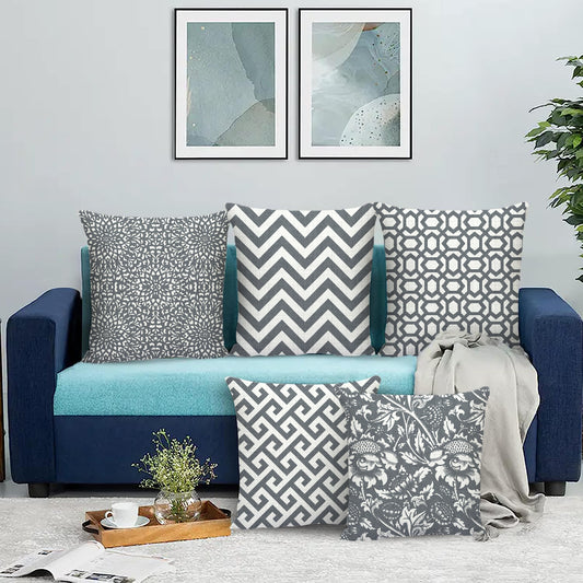 Indica Geo-Ethnic Printed Cushion Cover | Set Of 5