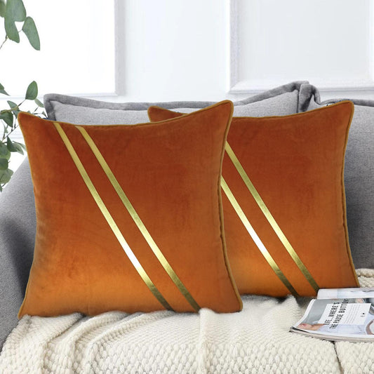 Ritz Golden Striped Cushion Cover | Set Of 2