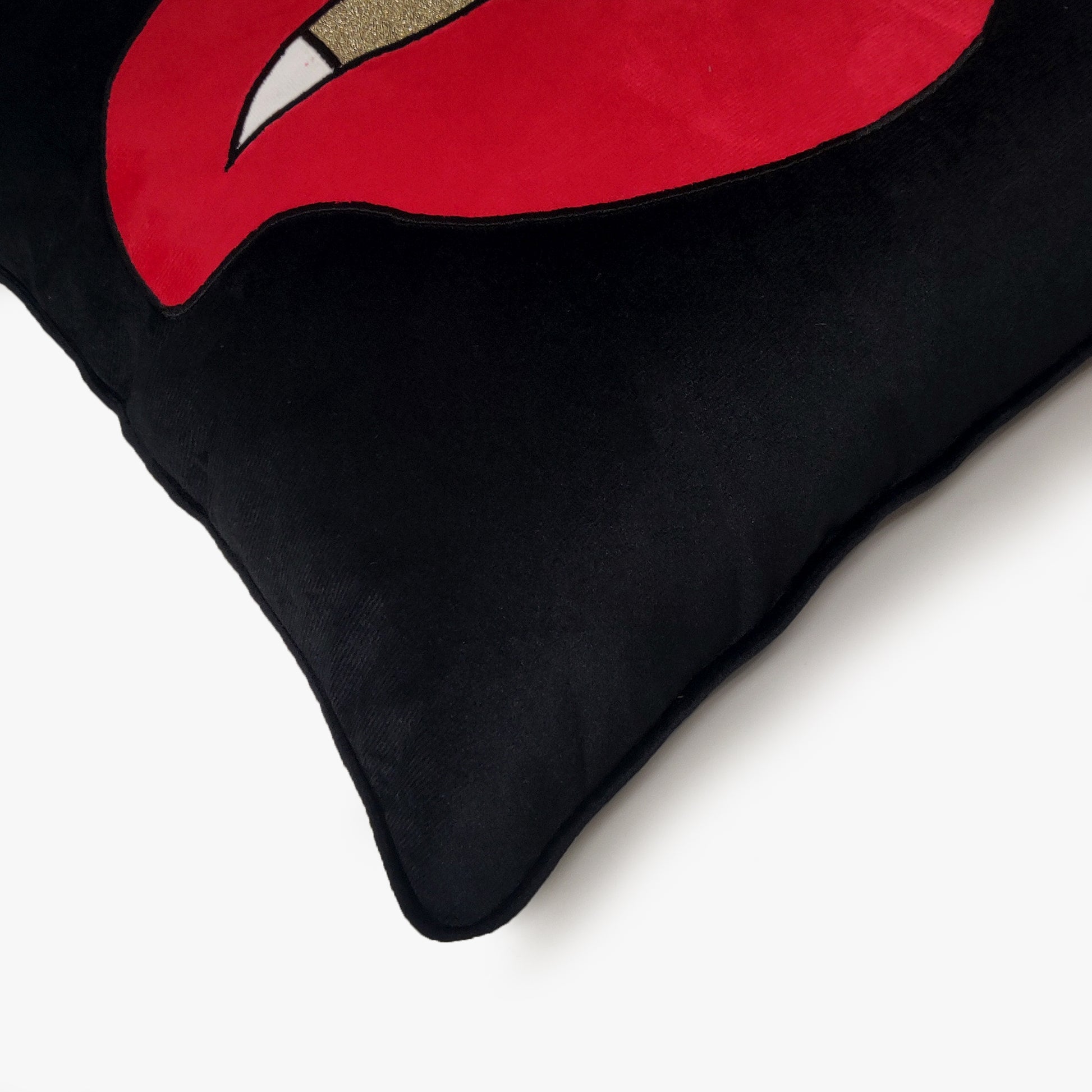 Black Velvet & Appliqué 'Biting Lips' Cushion Cover