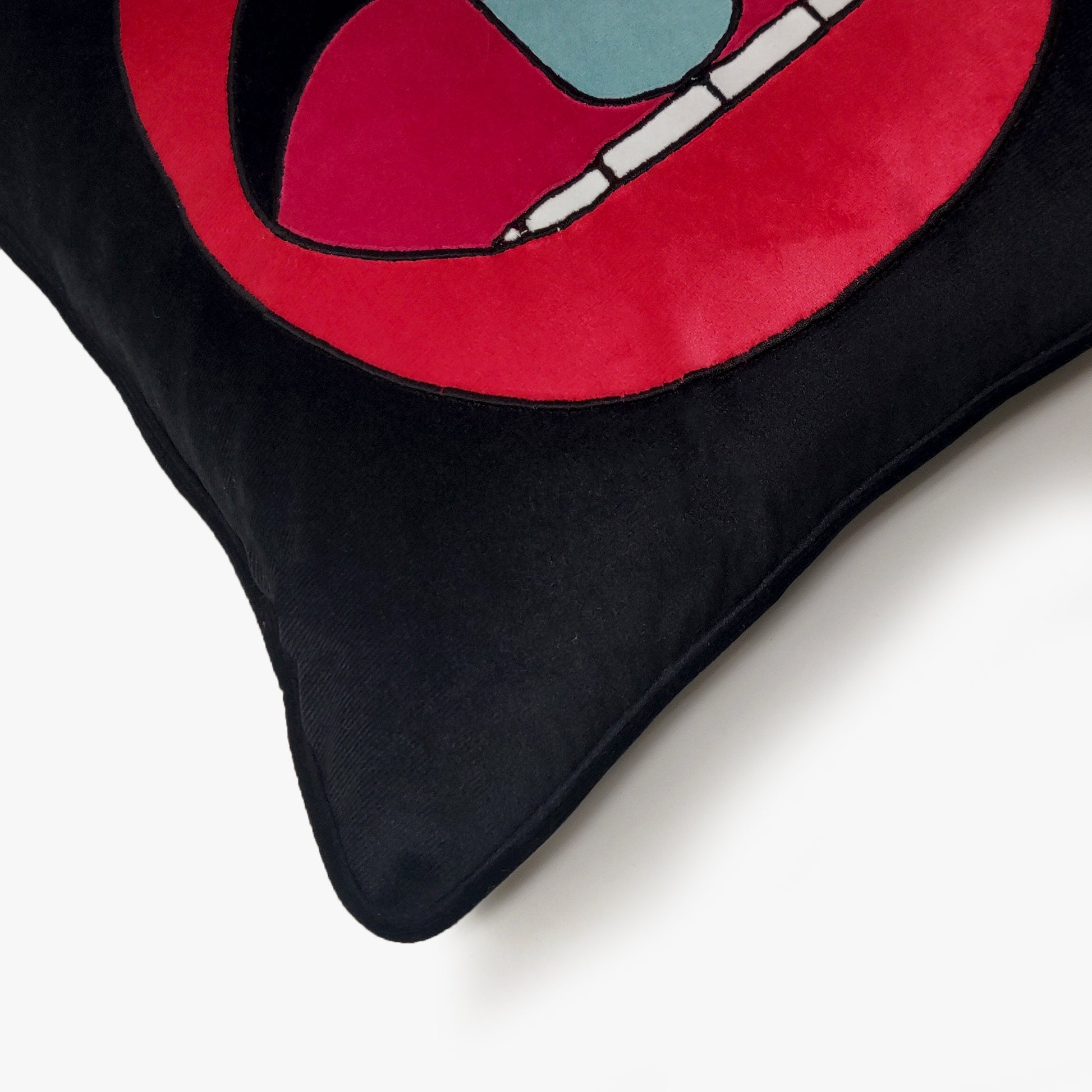 Black Velvet & Appliqué 'Chill Pill' Lips Cushion Cover